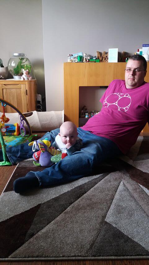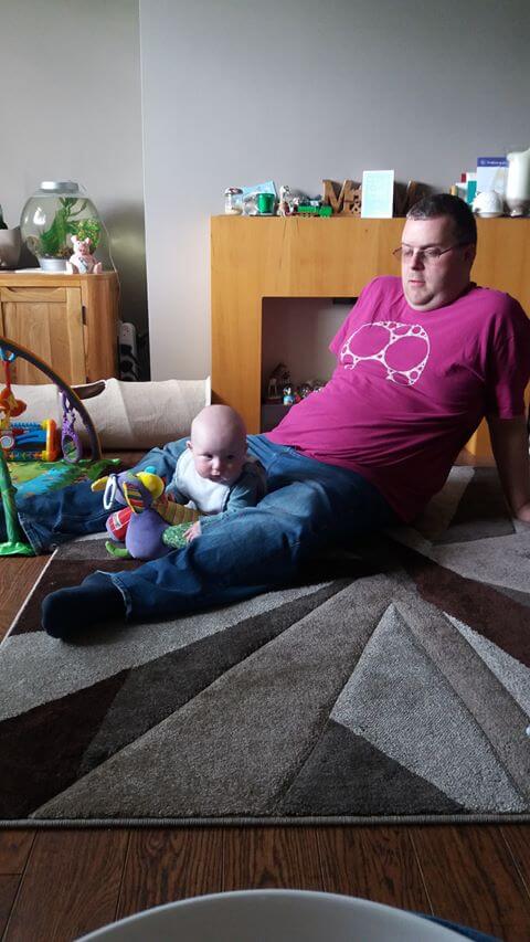 In the evening, when he came home from work, Henry practised sitting up with Daddy on the rug.