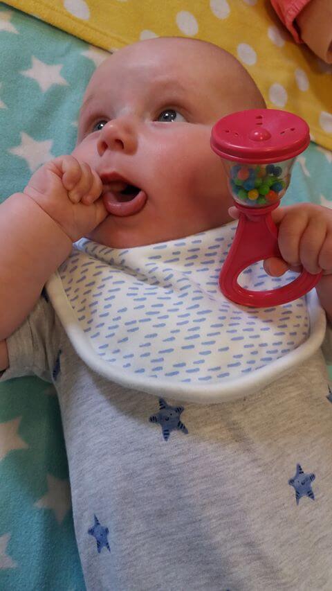 Henry enjoyed his Rhythm Time, as usual, this week with added bubbles! He did some excellent shaker work whilst messing about with his tongue. His teeth were bothering him today, however, but cuddles with Mummy soon solved the problem.