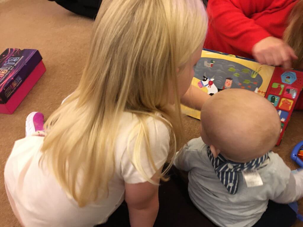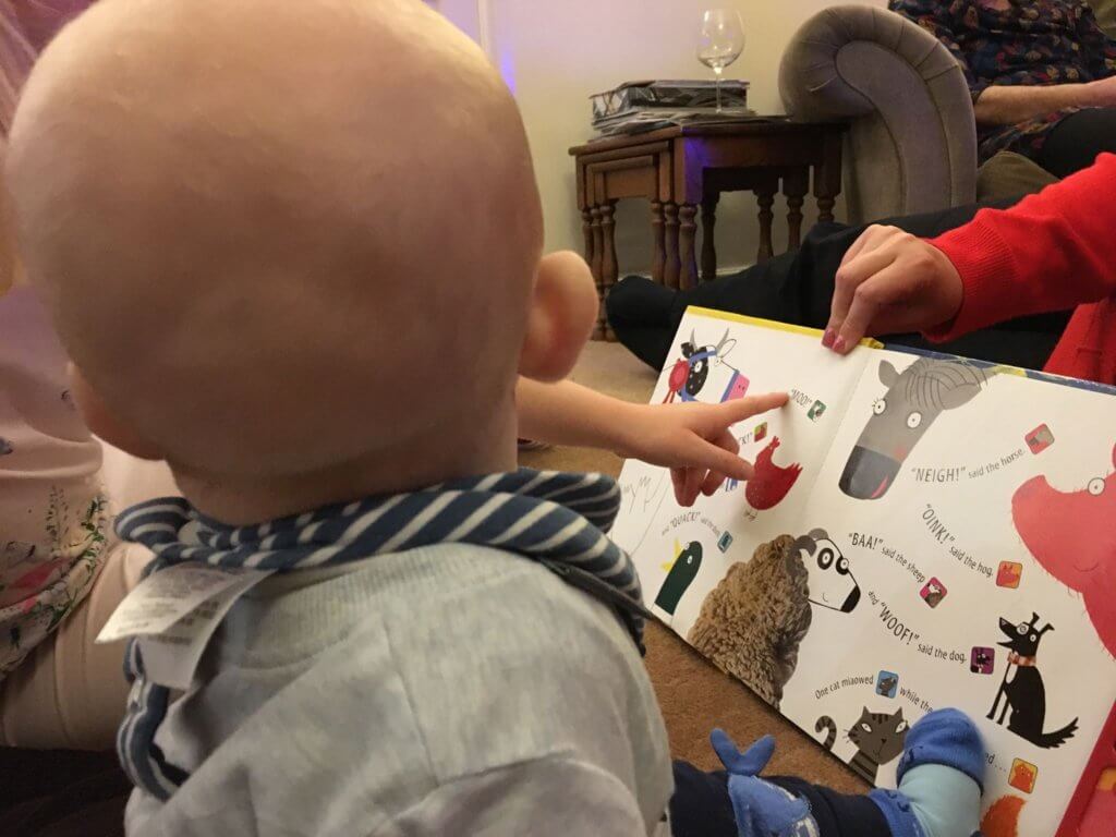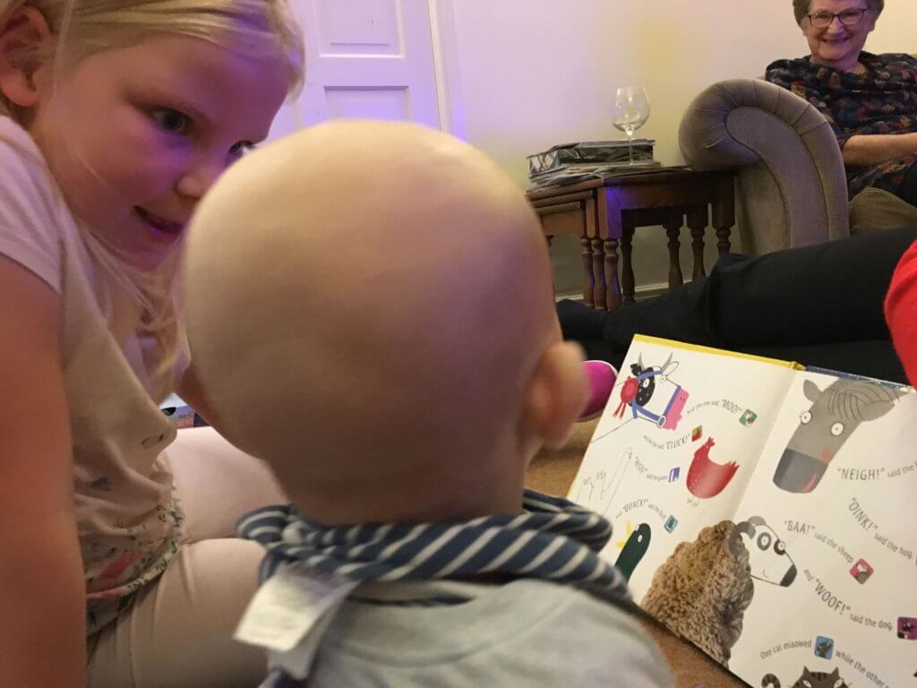Later, we went for tea at our friend’s house. Henry met their rabbit, Fudge, for the first time and enjoyed listening to Isobelle reading a story.