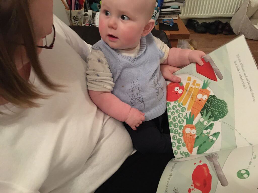 After tea, mummy read a book about a runaway pea – Henry listened carefully, especially when she did silly voices. Henry was very snotty today – he doesn’t like having his nose wiped, which is not a good combination!