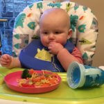 At lunch Henry has started trying to pinch from another girl’s highchair if they are sat too closely together – the girl is far from impressed at this situation!