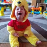 Henry has been very vocal today! He was dressed as Winnie The Pooh for a Rhythm Time fancy dress session which we watched on the TV. He wasn’t happy though – clearly dressing up is not for him!