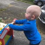 Daddy and Henry went for another long walk today. Henry didn’t nap and even had the chance to say hello to Auntie Sally, Isobelle and Great Auntie Beryl on the way past their house. In the afternoon Henry delivered some shortbread biscuits to his friends by wheeling them in his truck. Mummy was blowing bubbles from Henry’s new bubble wand in the bath and was shouted at every time she tried to stop!