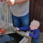 After lunch, we tried doing some painting but Henry wasn’t happy, so we went to get some more fish for the pond. Henry chose the ones we got by pointing and squealing at the tank.