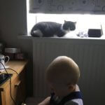During lunch, he began falling asleep in the highchair, so he had a nap. Afterwards, he happily watched his childminder’s husband cut the grass.
