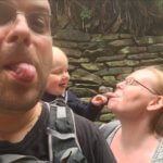 We went on another geocaching trip today, only finding a few and ending up in Holmfirth. Henry got into the backpack carrier to have a little walk up a steep hill, but we couldn’t find the cache when we got there – we were not happy! We cheered ourselves up by picking (and eating) blackberries, pulling lots of silly faces and sticking our tongues out though.