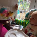 Henry had a busy day today, firstly doing some crafts with mummy – sticking colourful feathers onto a duck outline which mummy had drawn. He did really well with this and didn’t even try to eat the glue today! In the afternoon, we went to Goodall’s Ice Cream Parlour to meet some friends (and eat ice cream). Henry tried the raspberry flavour and really enjoyed it. He did lots of wandering around, looking at the animals and picking up sticks. On the way home we called at Tong Garden Centre to buy a few new fish for mummy’s Biorb – Henry helped mummy to choose them.